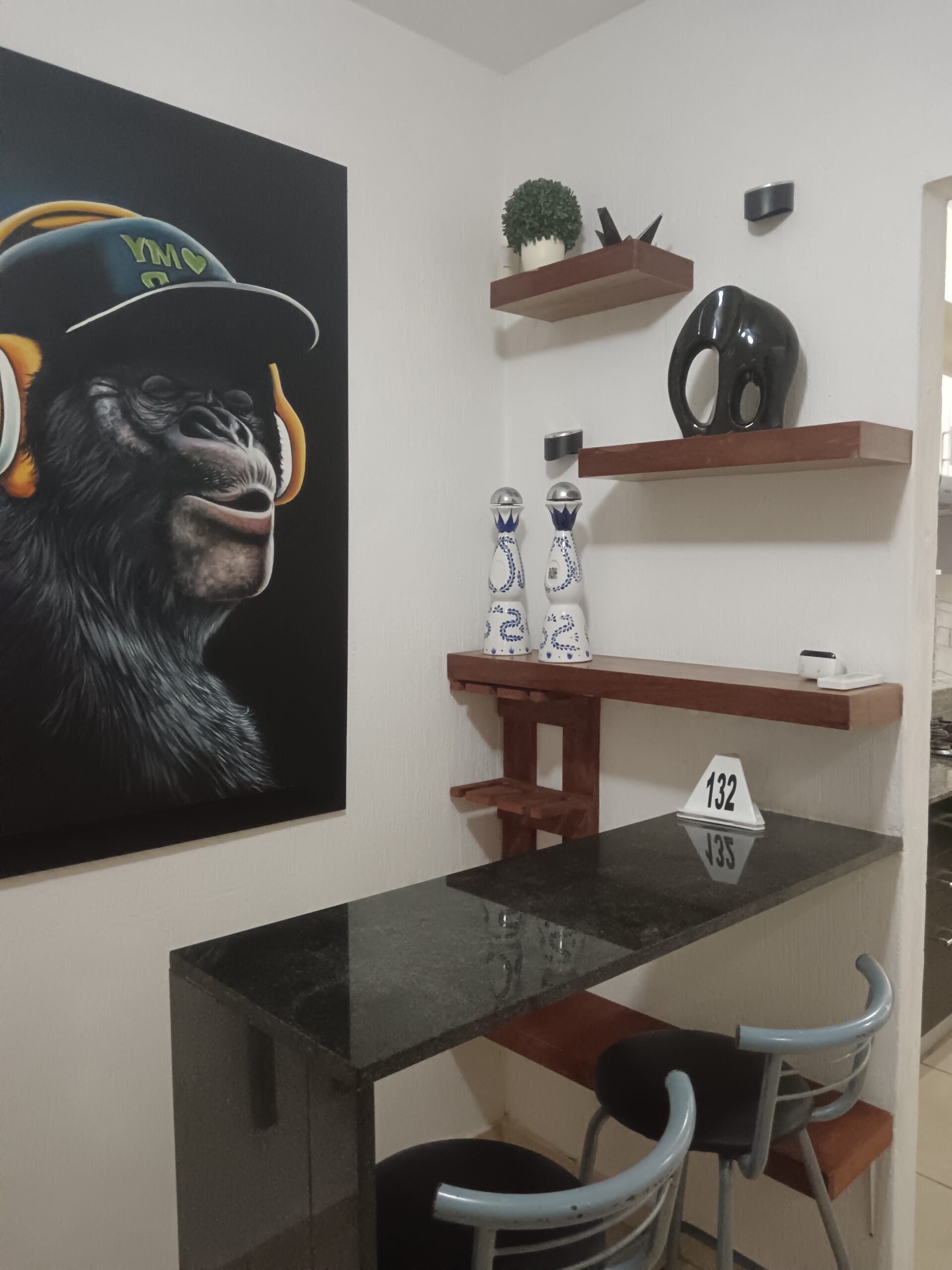 • Cocina equipada con cocina integral, refrigerador y bar.